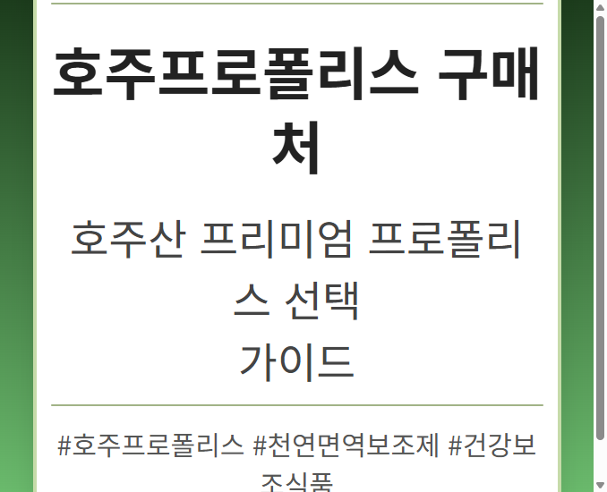 목차 호주산 프로폴리스의 우수성과 구매 필요성 진짜 호주산 프로폴리스 구별법 신뢰할 수 있는 호주 프로폴리스 구매처 호주 프로폴리스 구매 시